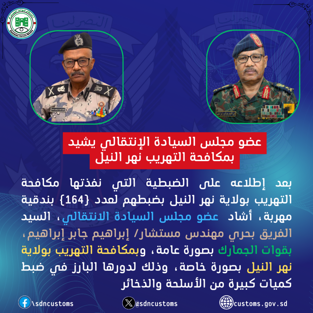 عضو مجلس السيادة يشيد بمكافحة التهريب نهر النيل